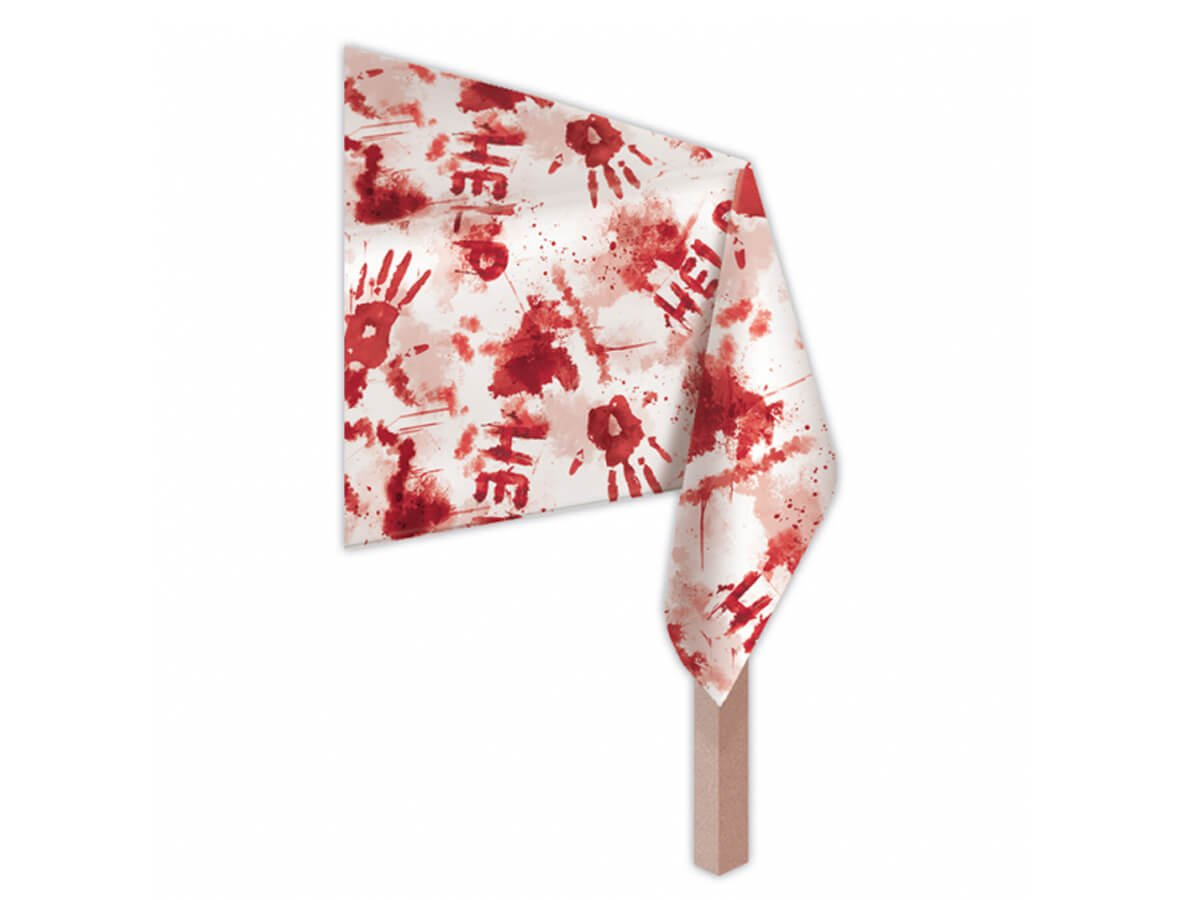 Zapraszamy do zakupu niezwykle oryginalnego obrusa, który doskonale urozmaici każdą Halloweenową dekorację. Obrus z zakrwawionymi śladami dłoni i przerażającym napisem "HELP" to idealne tło dla strasznych potraw i przekąsek podczas październikowej nocy grozy. Z jego pomocą łatwo stworzyć atmosferę prawdziwego horroru na każdym przyjęciu Halloweenowym.