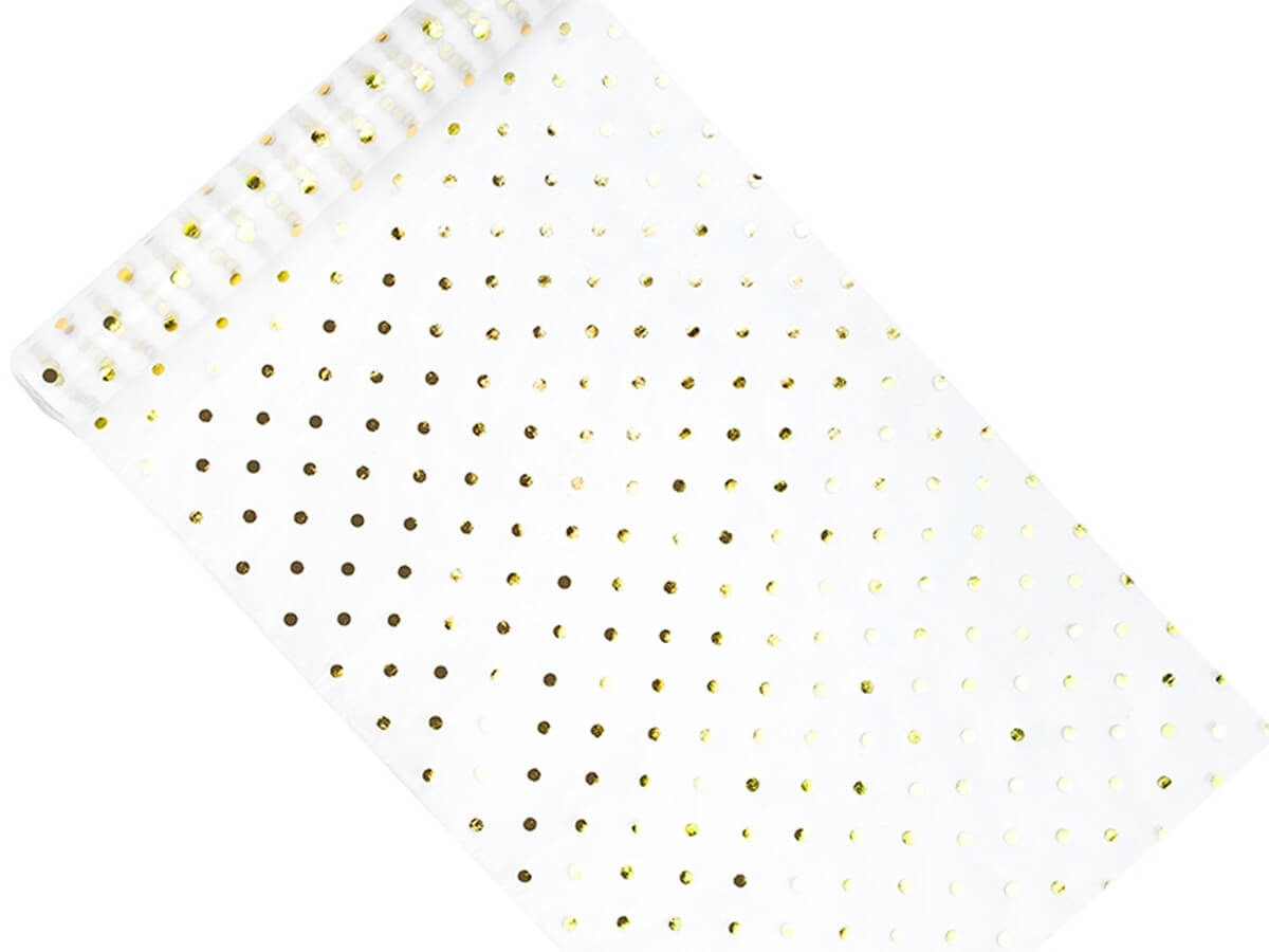 Organza biała ze złotymi kropkami - 36 cm x 9 m.