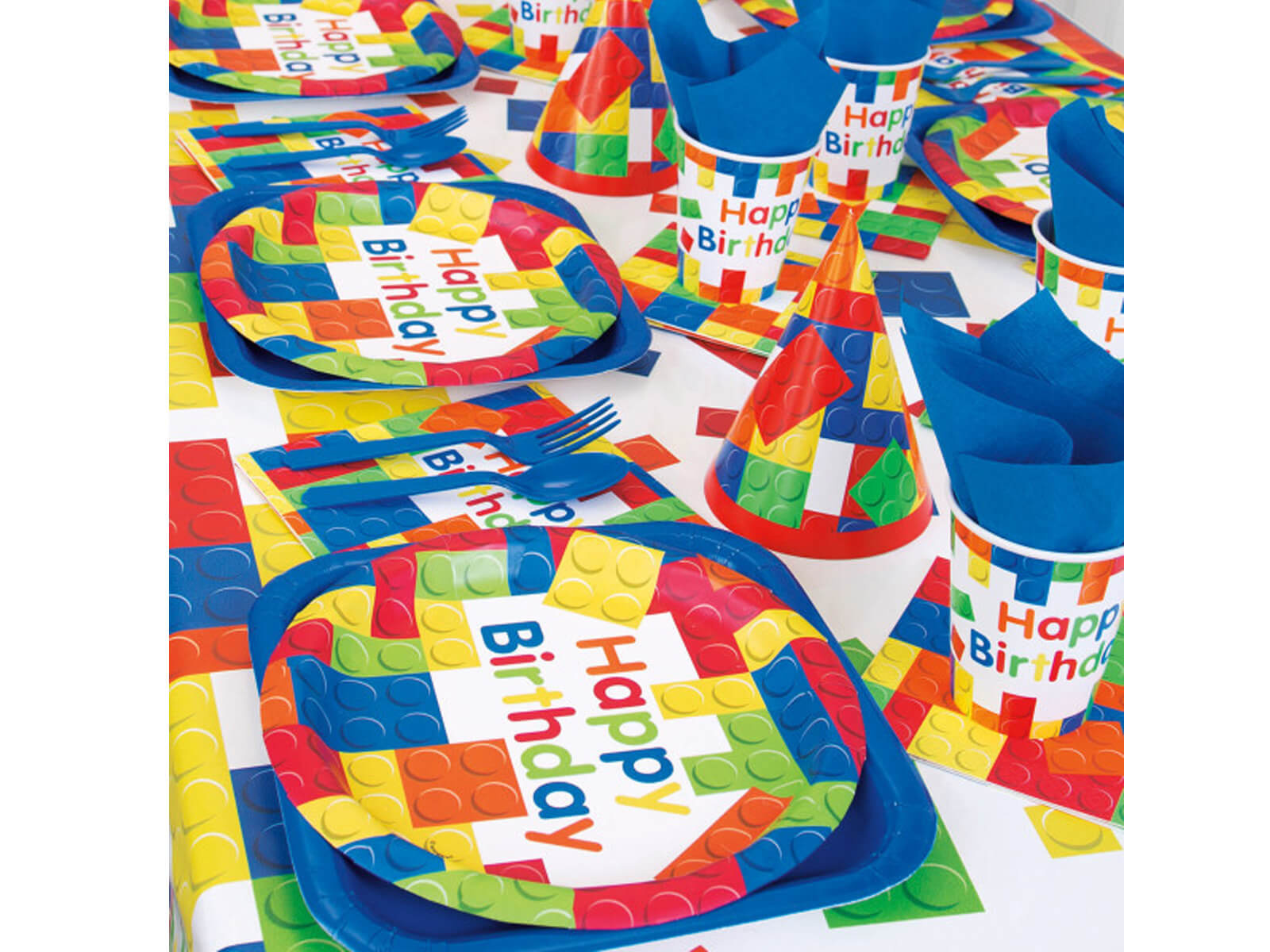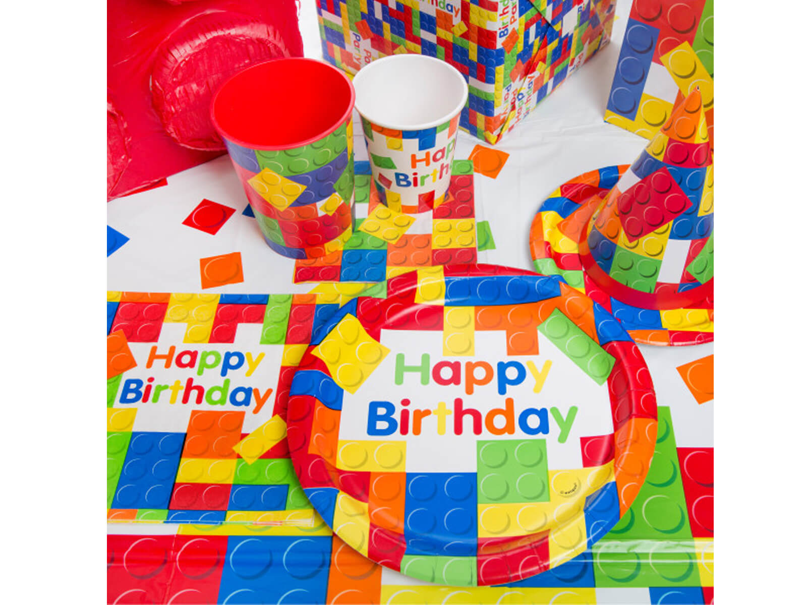 Talerzyki urodzinowe Klocki - 23 cm - 8 szt.