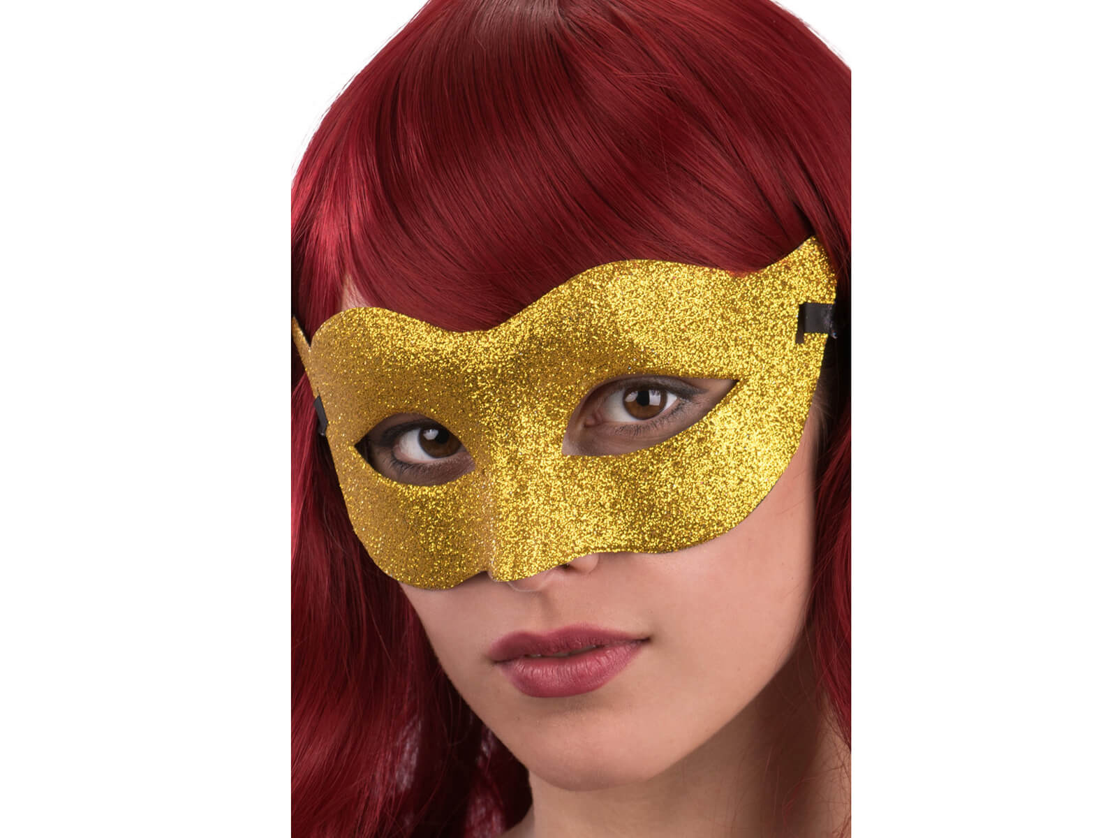 Niezwykle efektowna i elegancka Maska wenecka w kolorze złotym ozdobiona brokatem z pewnością doda blasku Twojemu karnawałowemu lub noworocznemu strojowi. Ta piękna maska jest idealna na różnego rodzaju bal maskowy, sylwestrową noc czy tematyczne przyjęcie. Wykonana z trwałych, ale lekkich materiałów maska zapewnia komfort noszenia przez całą noc. Złoty kolor i brokatowe zdobienia świetnie komponują się z eleganckimi, jak i bardziej odważnymi kostiumami, tworząc niezapomniany wygląd.