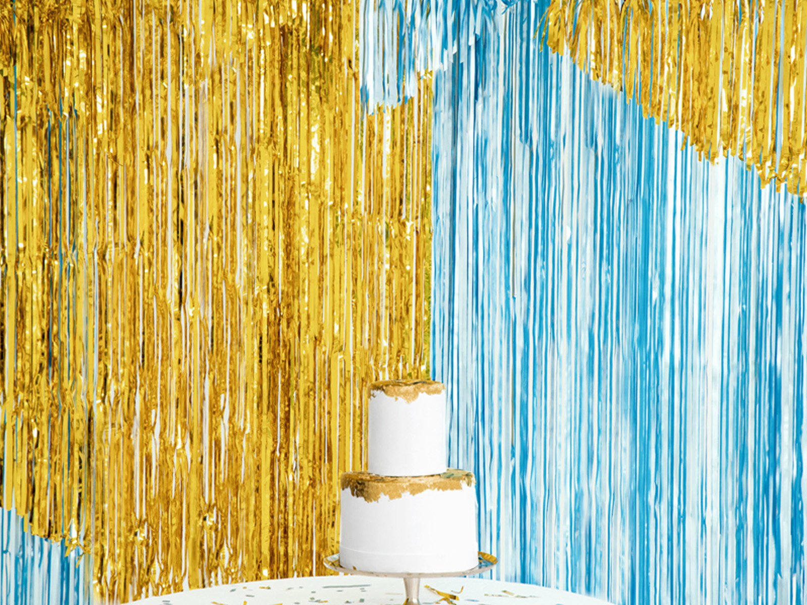 W naszych drzwiach może pojawić się szczególny rodzaj elegancji dzięki kurtynie - dekoracji karnawałowej na drzwi metalicznej w kolorze złotym o wymiarach 90 cm x 250 cm! Jest to idealna forma powitania gości - i jednocześnie uatrakcyjnienie każdego pomieszczenia. Ten ozdobny produkt został stworzony z myślą o nadaniu sezonowemu stylu i atmosfery. Dodatkowo łatwa do zamocowania. Przedstawiamy elegancką propozycje dla Twoich domów i rezydencji – kurtynę metaliczną złotą!