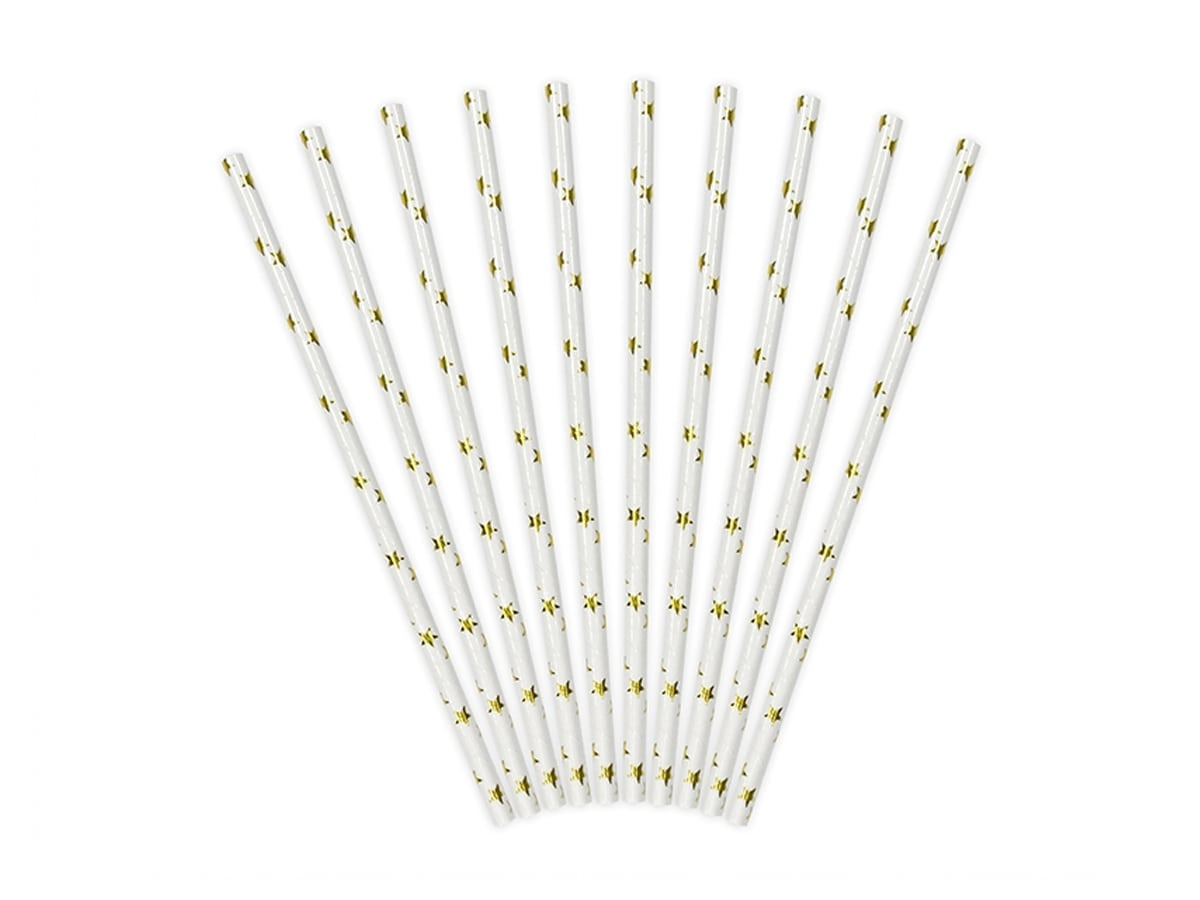 Słomki rurki białe w złote gwiazdki - 10 szt.