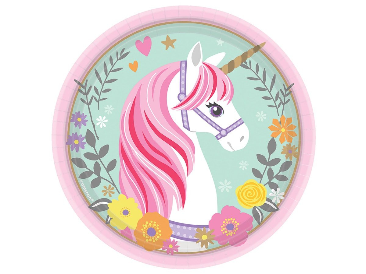 Talerzyki papierowe na urodziny Magiczny Jednorożec - 18 cm - 8 szt.