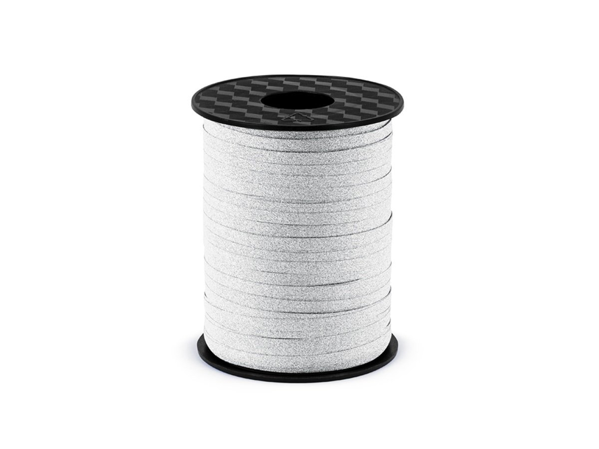 Wstążka ozdobna do balonów - brokatowa - srebrna - 225 m.