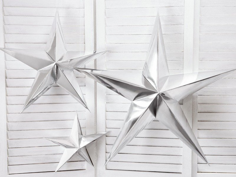 Dekoracja wisząca gwiazda papierowa srebrna - 45 cm