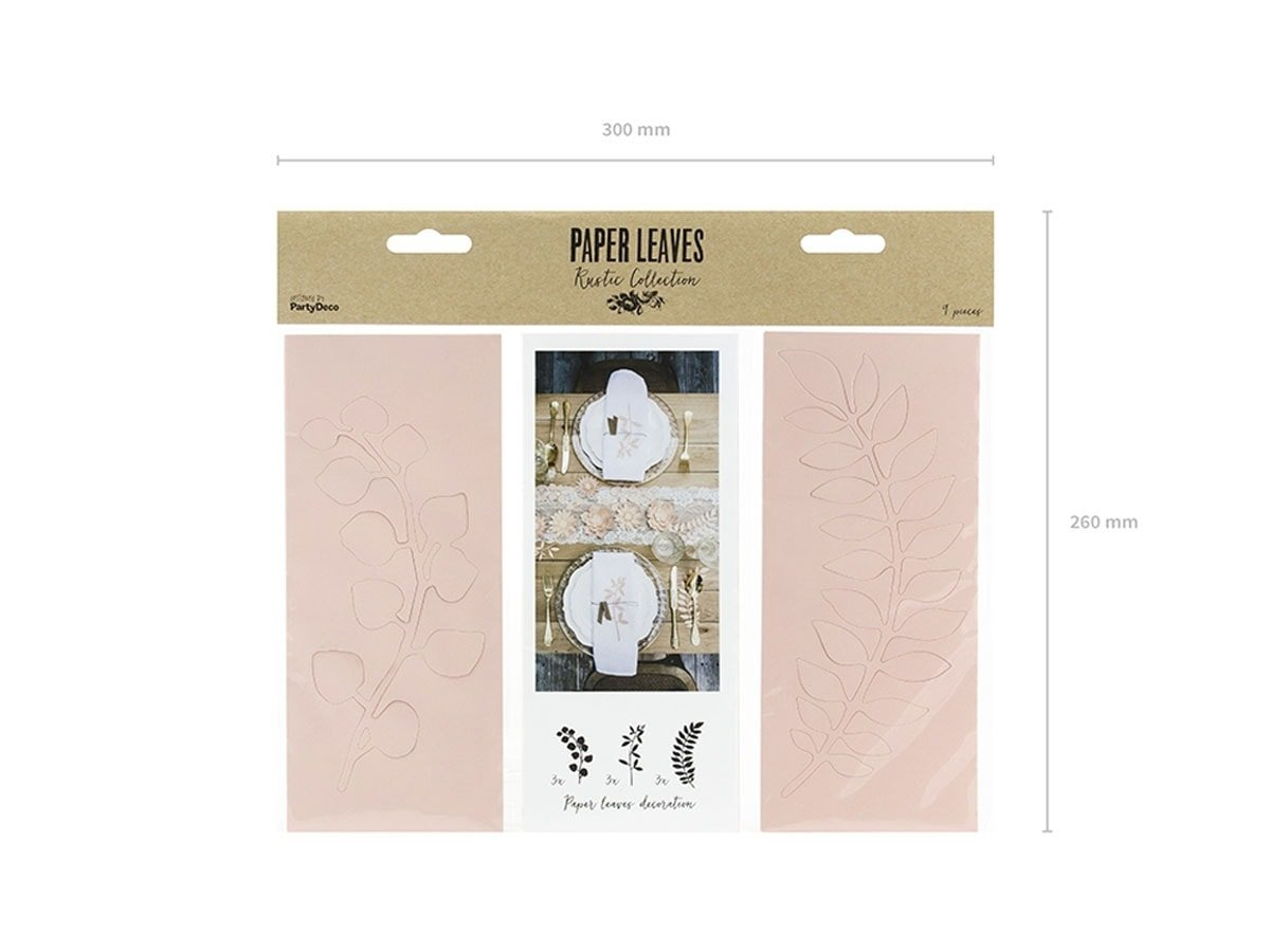 Dekoracja Gałązki z listkami pudrowy róż - 9 szt.