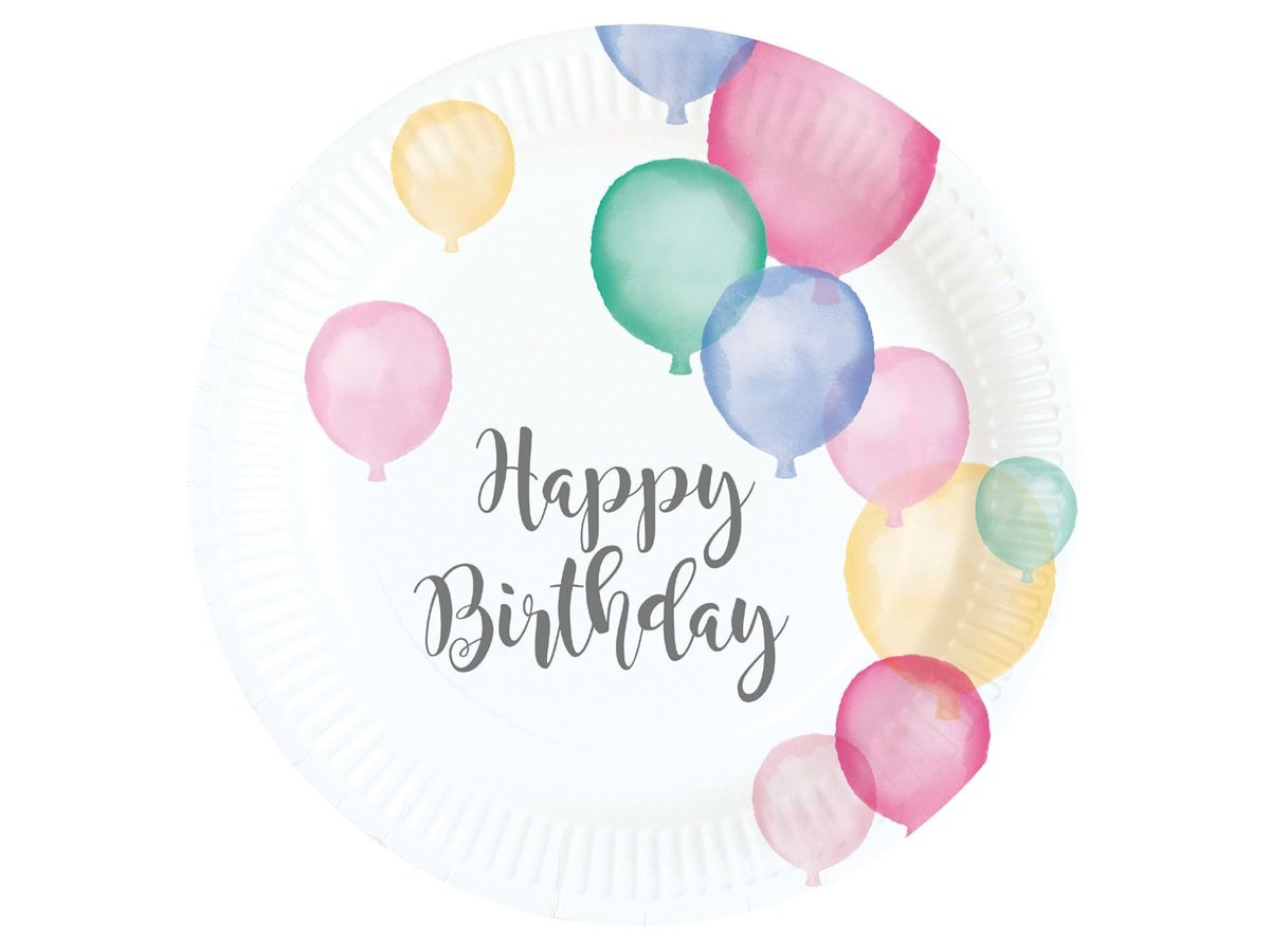 Talerzyki papierowe na urodziny Baloniki - 18 cm - 8 szt.