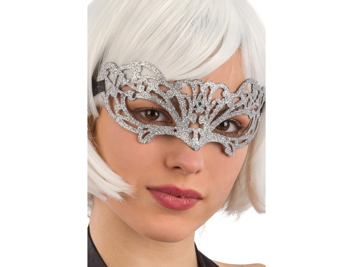 Brokatowa maska karnawałowa srebrna - 1 szt.