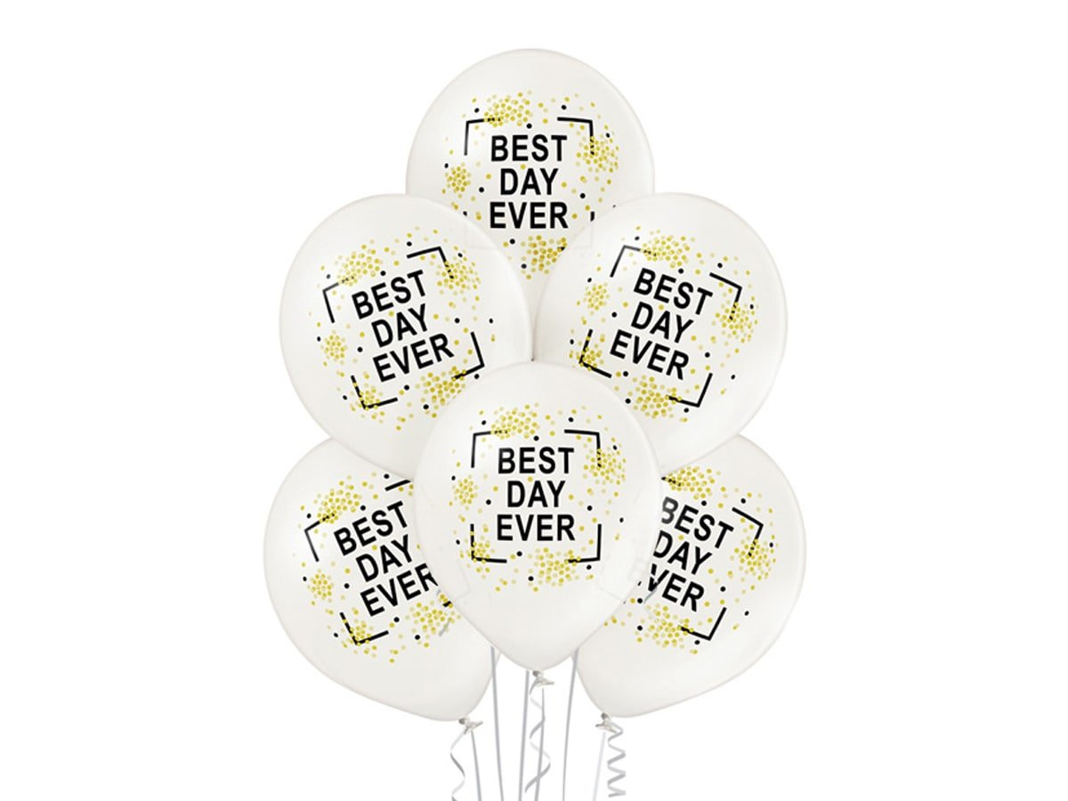 Balony metaliczne z nadrukiem Best Day Ever - 12" - 6 szt.