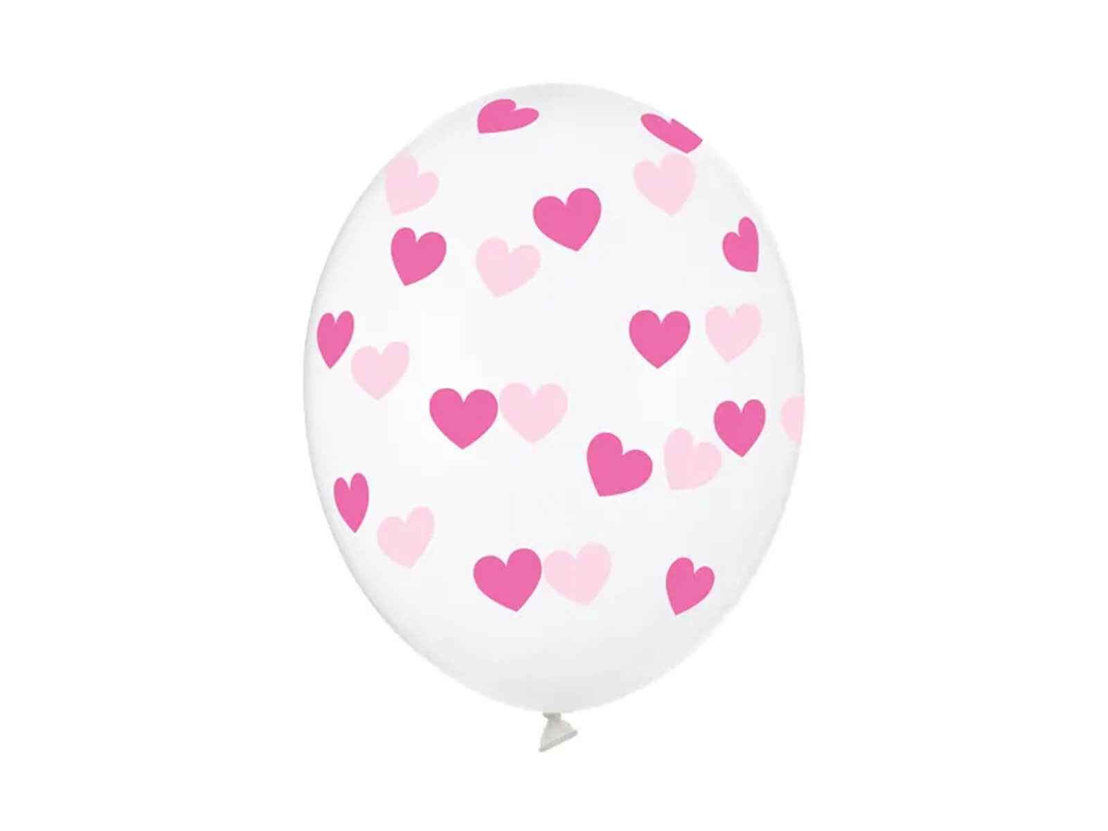 Balony przeźroczyste Serduszka różowe - 30 cm - 50 szt.