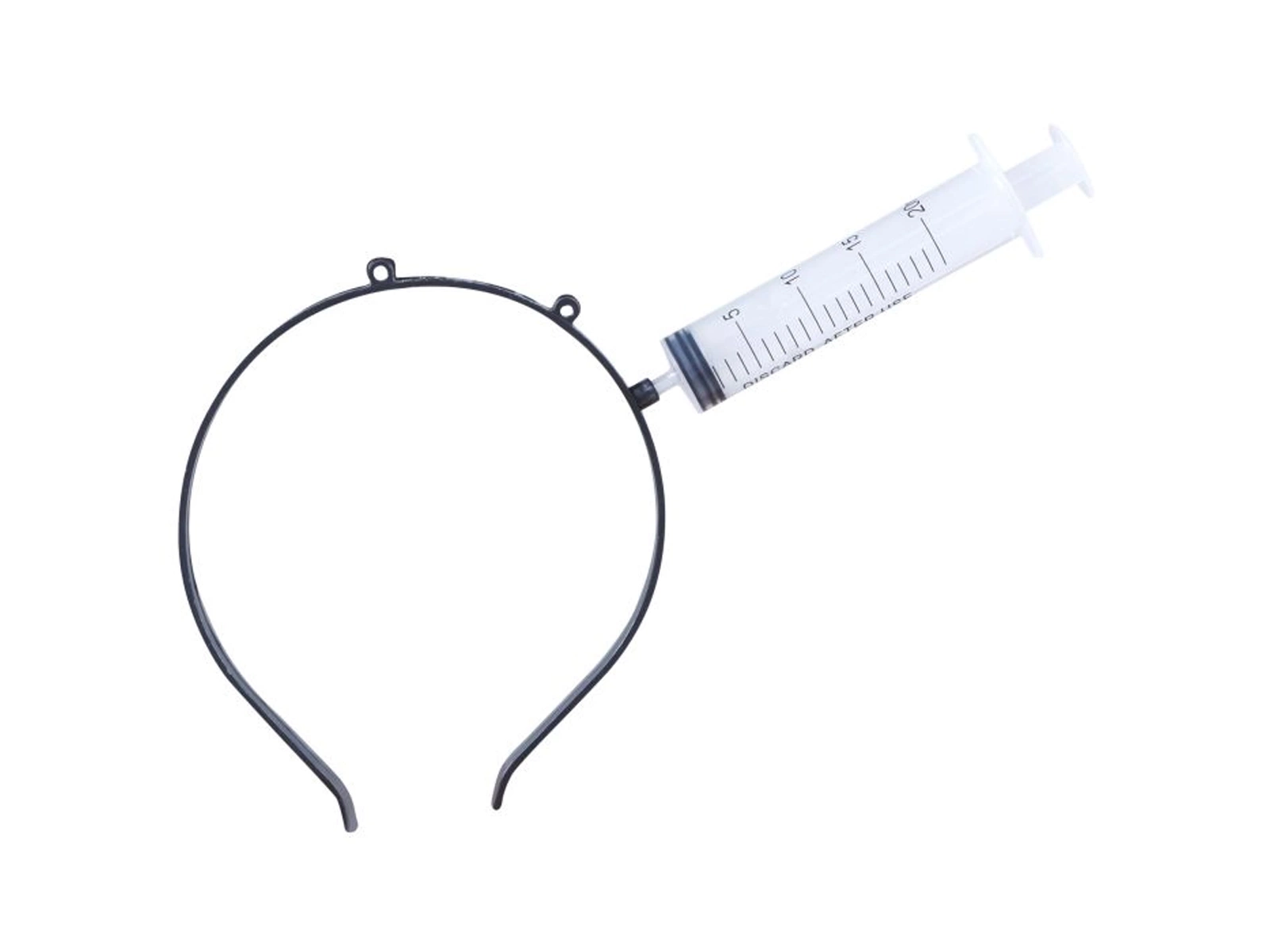 Zaskocz swoich przyjaciół i dodaj swojemu kostiumowi autentycznego horroru z naszą strzykawką w głowie. Doskonała zarówno na domówkę Halloween, jak i na zewnętrzne zabawy czy pochody. Jej uniwersalny rozmiar sprawia, że pasuje zarówno dorosłym, jak i starszym dzieciom.