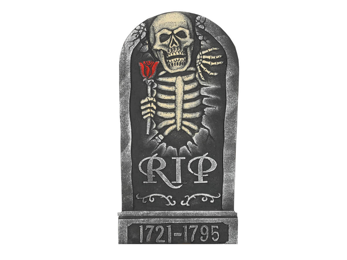 Nagrobek styropianowy RIP Szkielet z czerwoną różą: