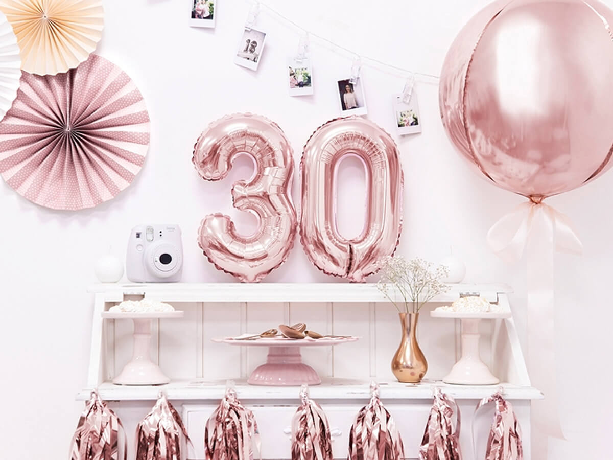 Balon foliowy cyfra 3 złoty róż - 35 cm