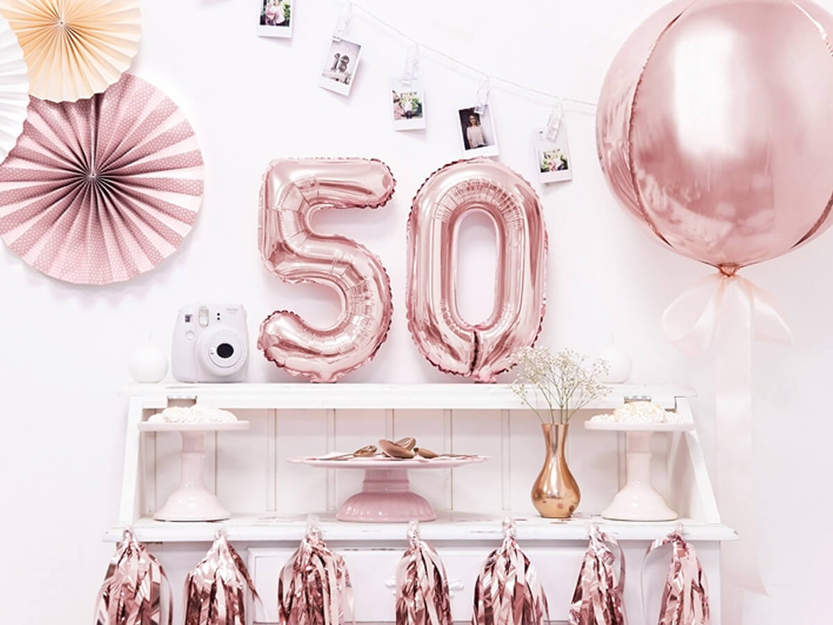 Balon foliowy cyfra 5 złoty róż - 35 cm