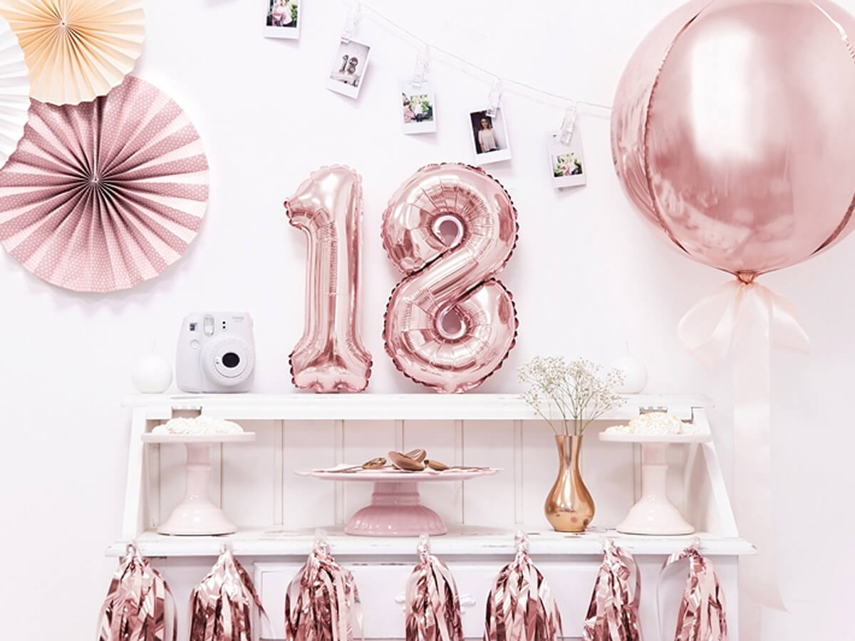 Balon foliowy cyfra 8 złoty róż - 35 cm