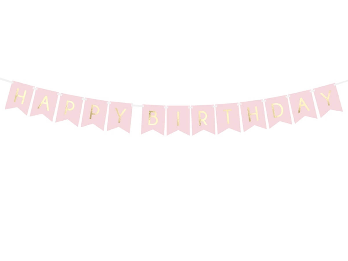 Baner różowy z napisem Happy Birthday - 175 cm - 1 szt.