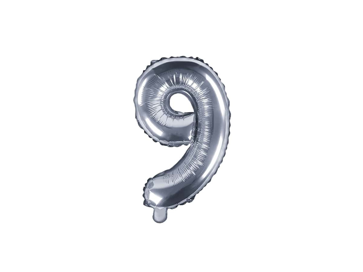 Balon foliowy cyfra 9 srebrna - 35 cm