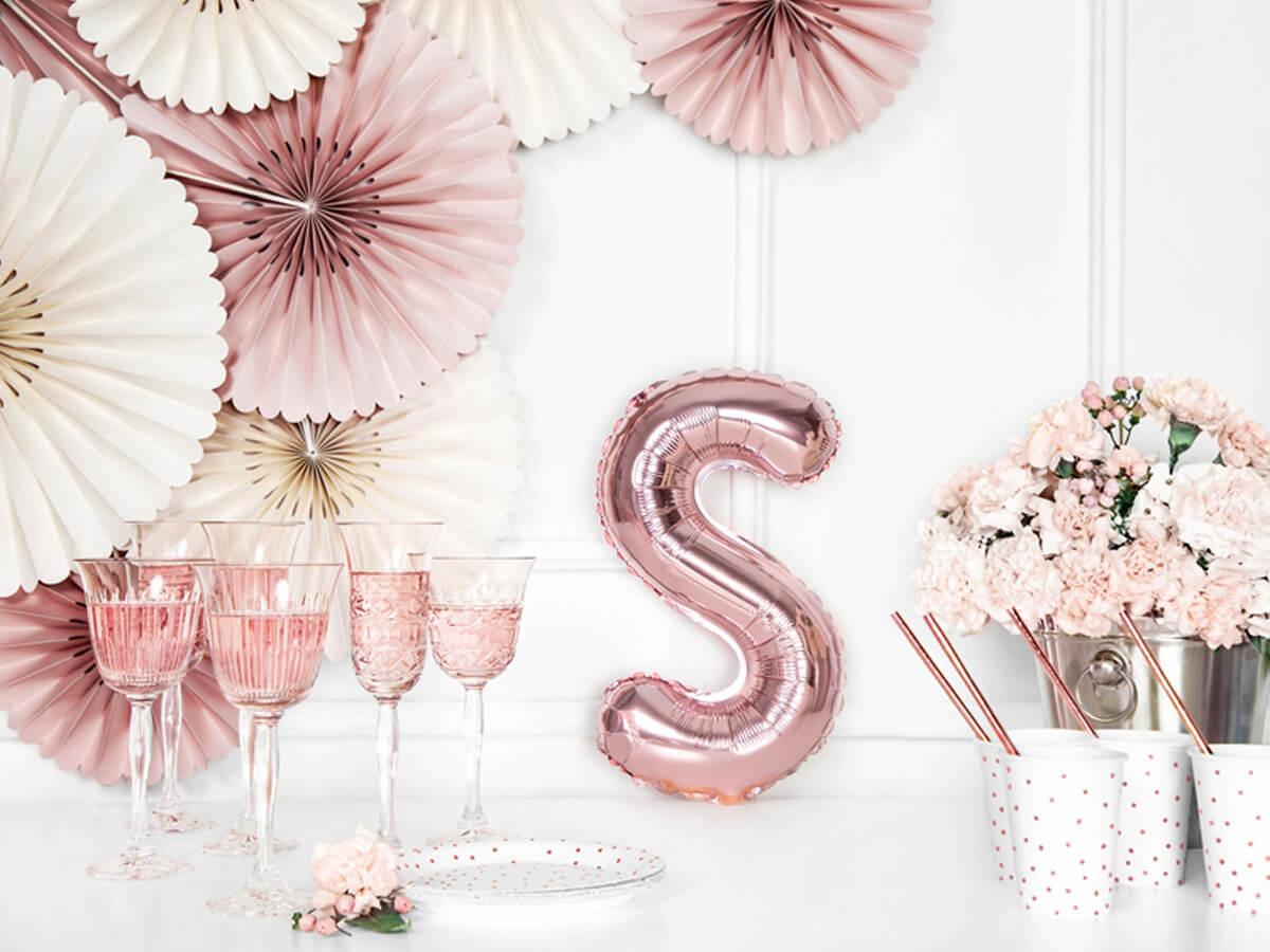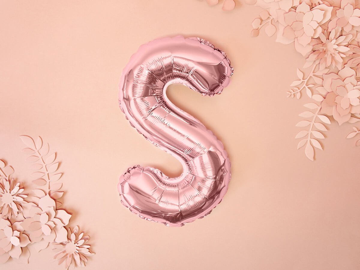 Balon foliowy litera "S" różowo-złota - 35 cm