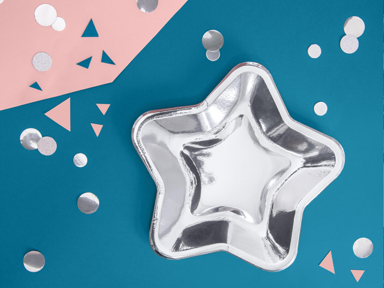 Przedstawiamy unikalne Talerzyki Gwiazda srebrne - perfekcyjne do zakończenia roku w stylu, czy celebrowania kolejnych urodzin. Wytworzone z myślą o szczególnych okazjach, kiedy nie chcemy skupiać się na zmywaniu, ale na dobrej zabawie.