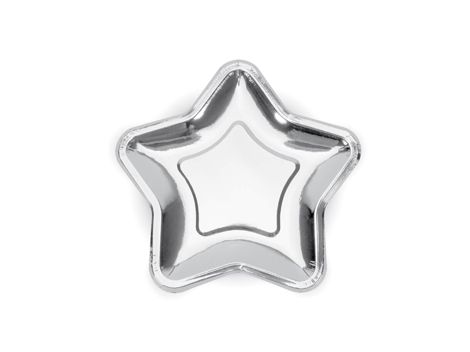 Talerzyki papierowe na urodziny Gwiazda srebrne - 23 cm - 6 szt.