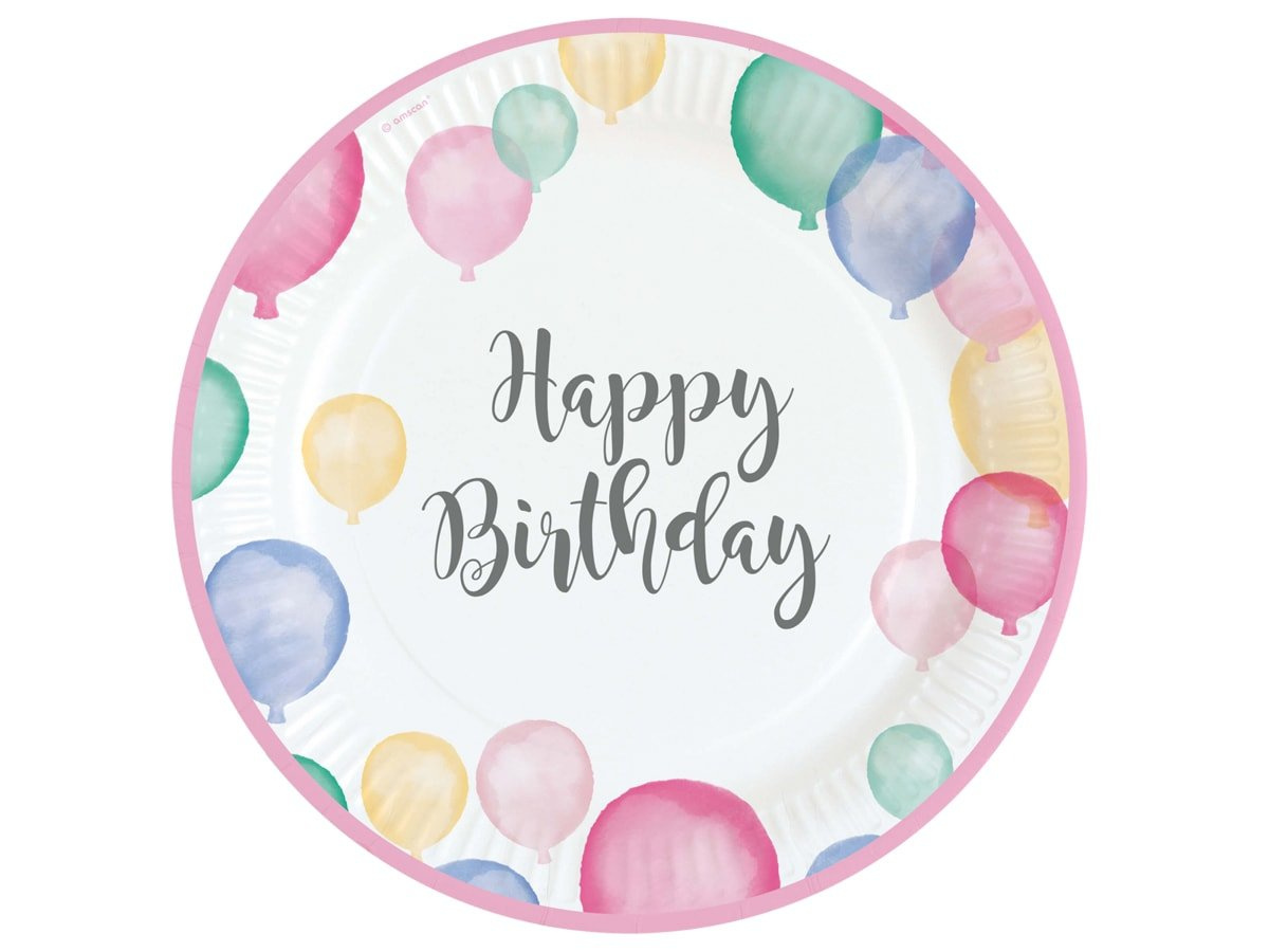 Talerzyki papierowe urodzinowe Baloniki - 23 cm - 8 szt.