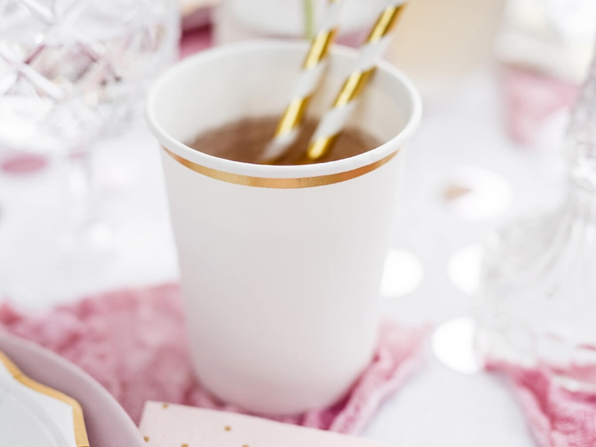 Kubeczki papierowe białe ze złotym brzegiem - 260 ml - 6 szt.