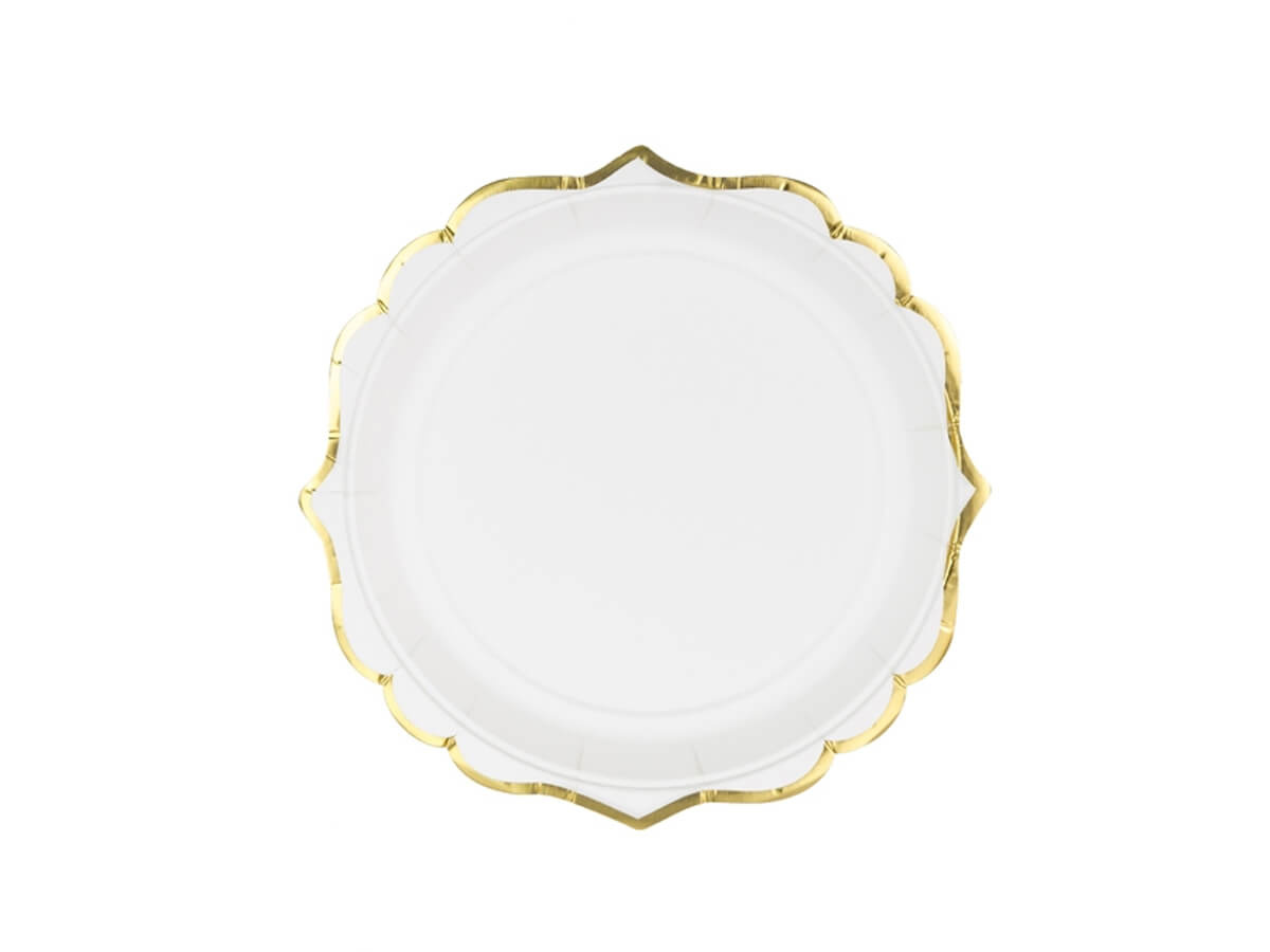 Talerzyki papierowe białe ze złotymi brzegami - 18 cm - 6 szt.
