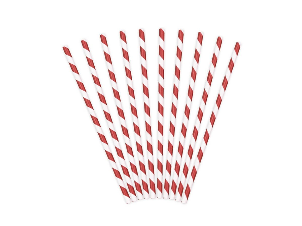 Słomki rurki biało-czerwone - 10 szt.