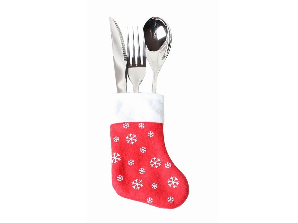 Ubranko na sztućce But Mikołaja ze śnieżynkami - 4 szt.
