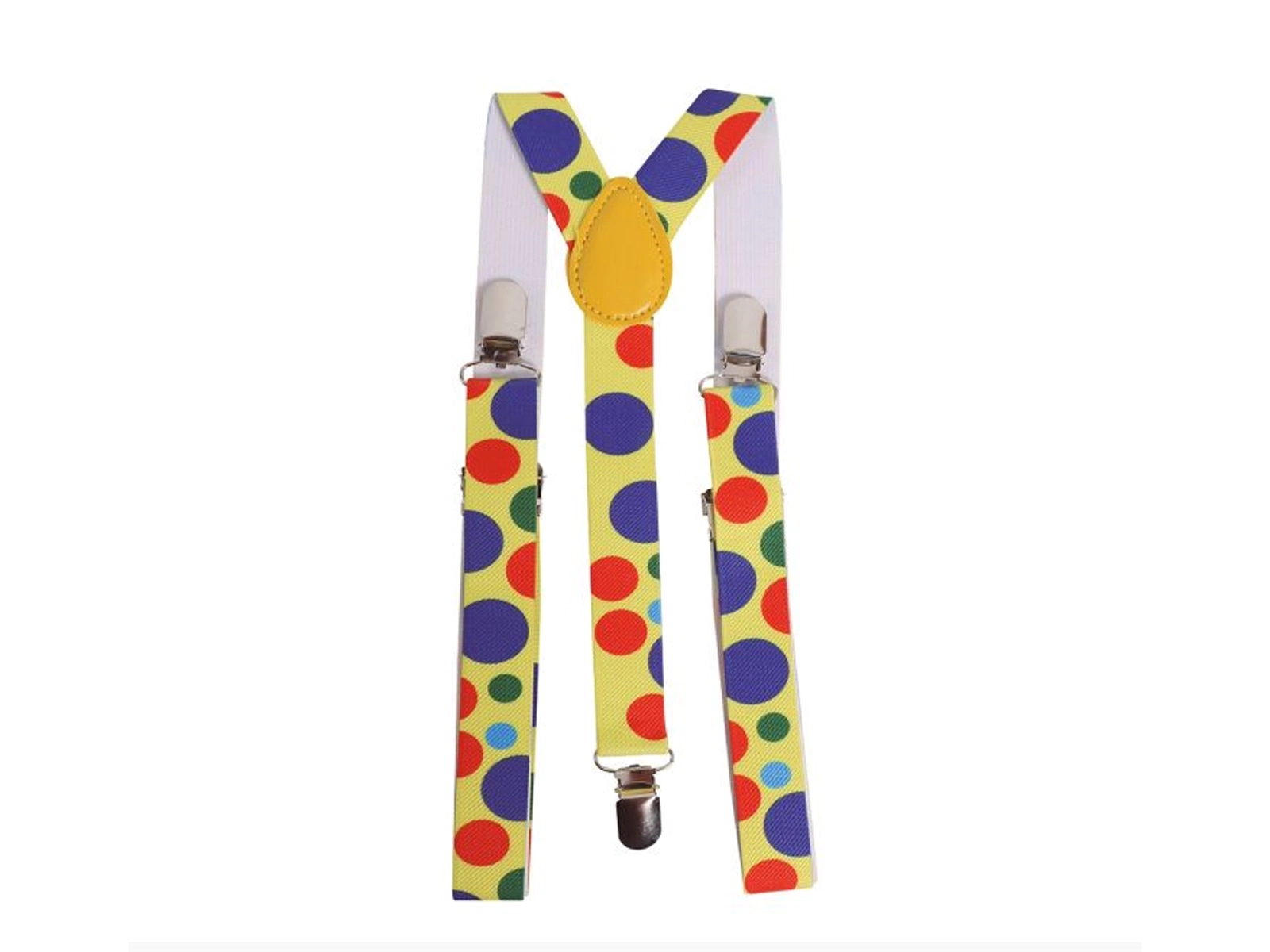 Nadaj swojemu kostiumowi klauna niepowtarzalny charakter z naszymi kolorowymi szelekami! Idealne dla każdego, kto chce zrobić wrażenie na przyjęciu lub podczas wieczoru panieńskiego/kawalerskiego. Łatwo mocowane żabki zapewnią, że szelki nie tylko będą świetnie wyglądać, ale również pozostaną na miejscu przez cały czas trwania zabawy.