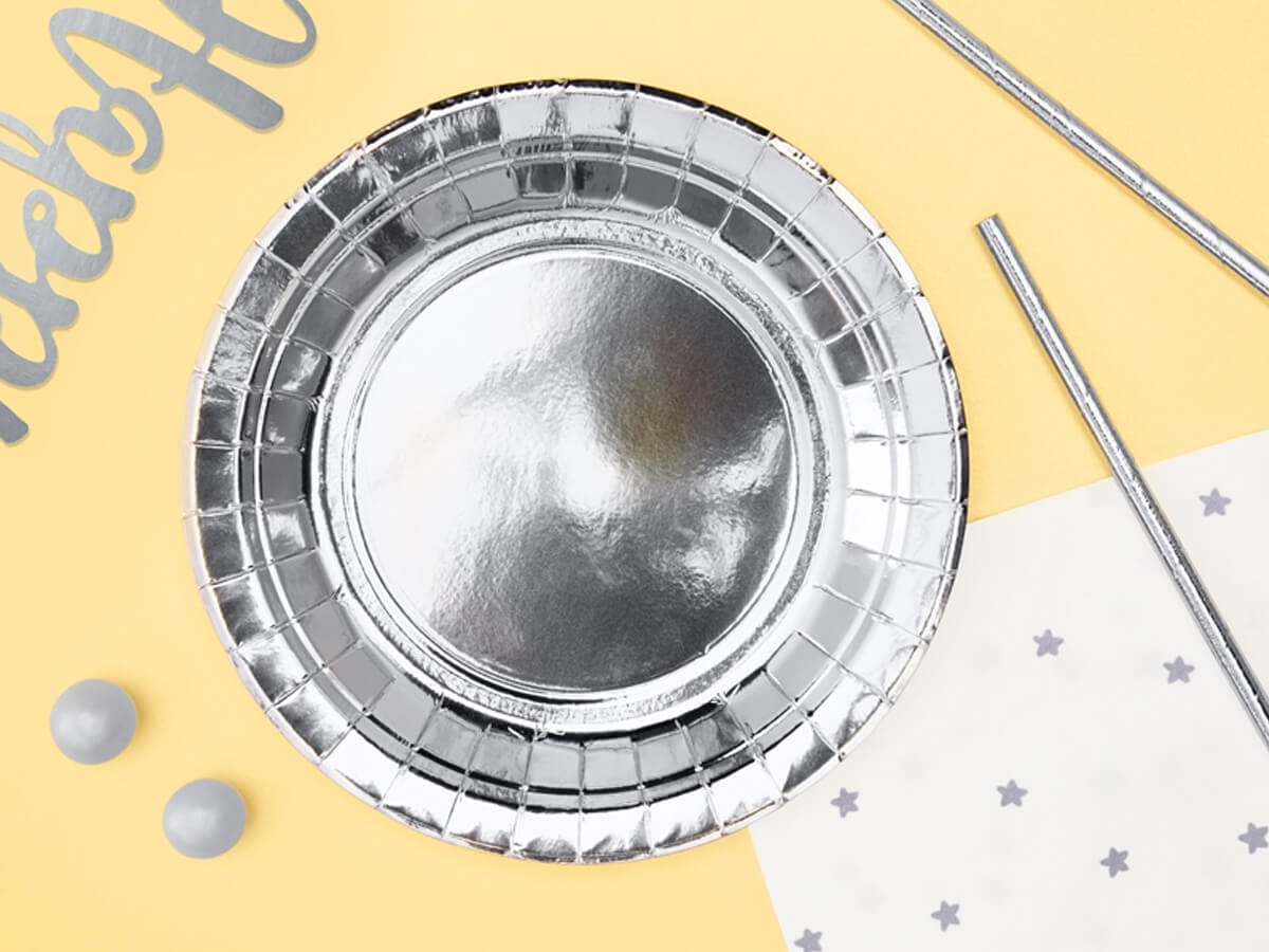 Talerzyki papierowe srebrne - 18 cm - 6 szt.