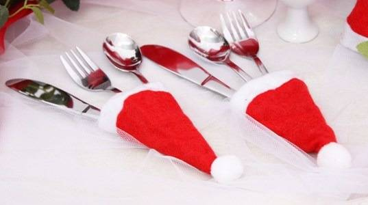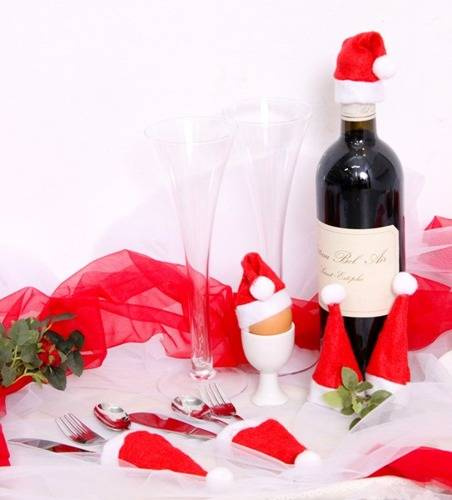 Czapeczki Mikołaja na sztućce, butelkę - 24 szt.