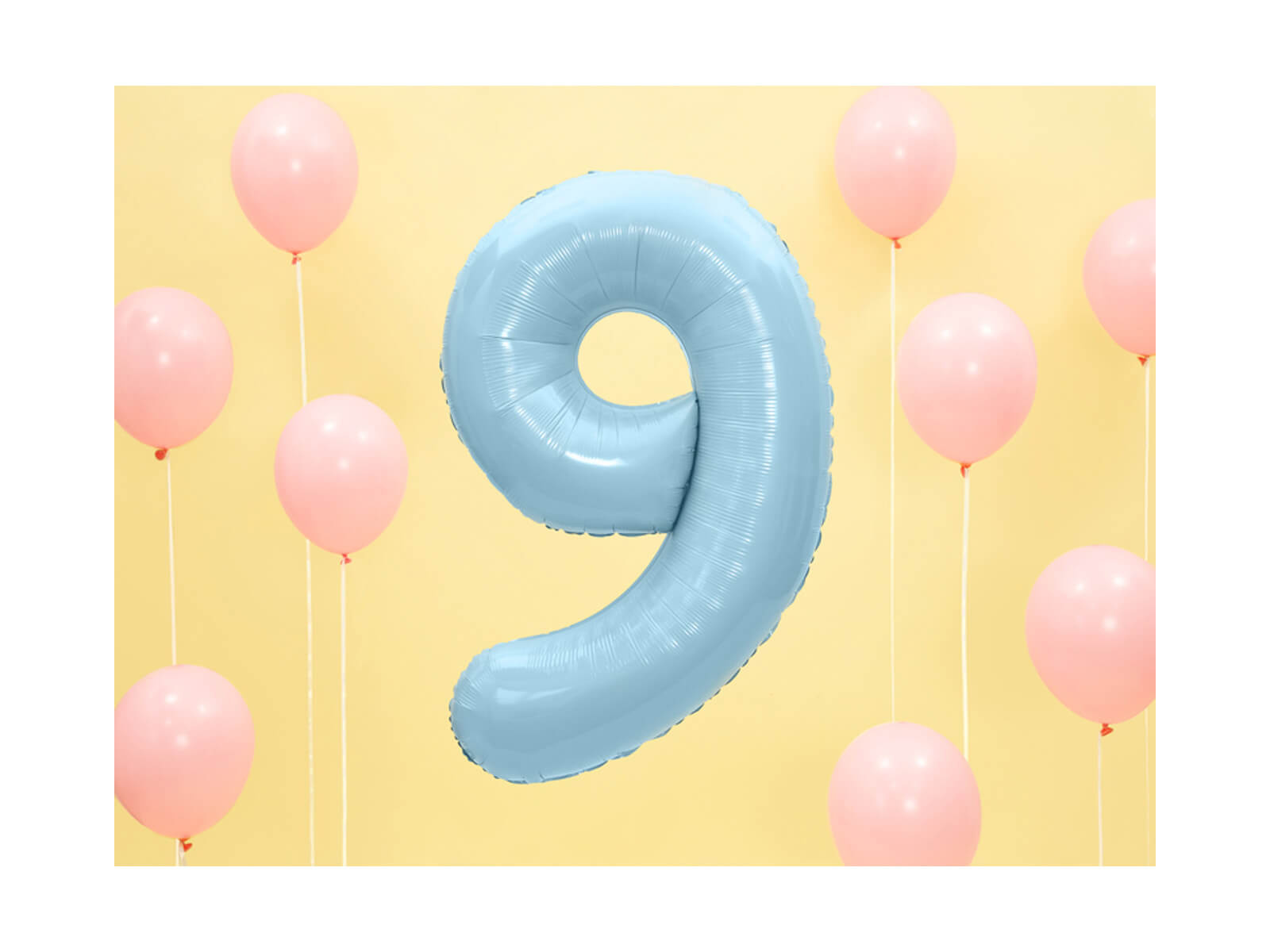 Balon foliowy cyfra 9 błękitna - 86 cm - 1 szt.