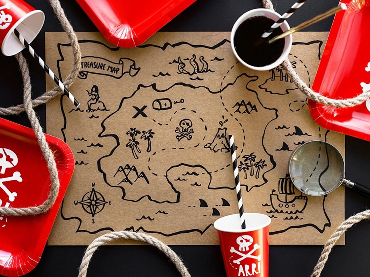 Zapraszamy do odkrycia naszych Podkładek Papierowych Piraci - idealnego dodatku do urodzinowego stołu małego pirata! Te wyjątkowe podkładki, o wymiarach 40 x 30 cm, są nie tylko praktyczne, ale także stanowią fantastyczną dekorację, która z pewnością zachwyci każdego małego miłośnika pirackich przygód.