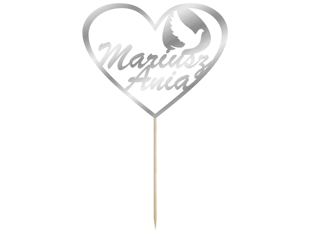 Topper na tort personalizowany - serce z imionami - 14 cm