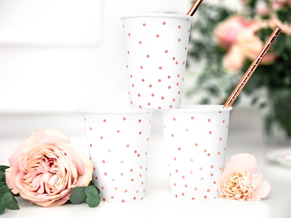 Kubeczki papierowe Kropki białe - 260 ml - 6 szt.