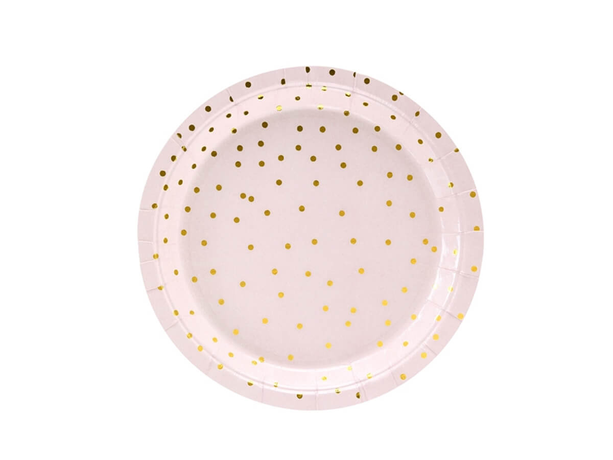 Talerzyki papierowe Kropki jasnoróżowe - 18 cm - 6 szt.
