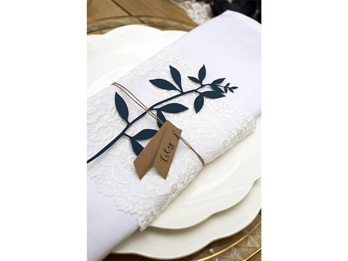 Dekoracja Gałązki z listkami granatowy - 6 szt.