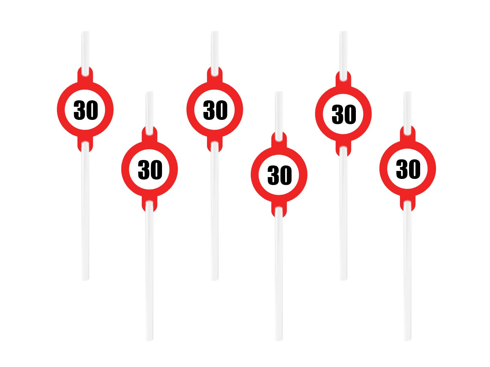 Słomki urodzinowe Znak Zakazu na 30 urodziny - 6 szt.