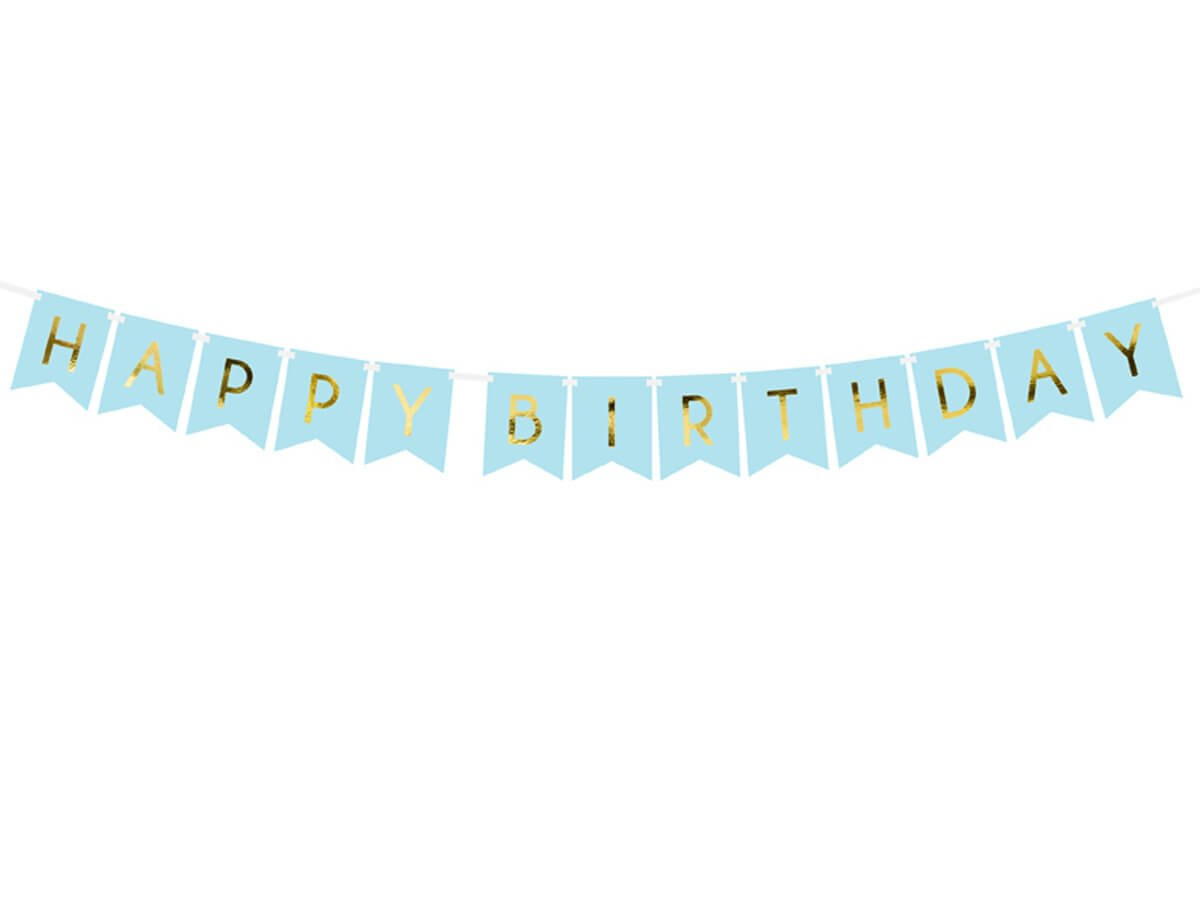 Baner błękitny z napisem Happy Birthday - 175 cm - 1 szt.