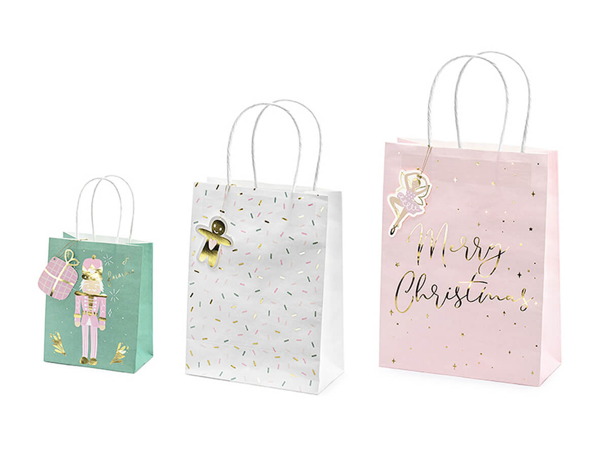 Zestaw 3 torebek to praktyczne i urokliwe rozwiązanie, które doda magii każdemu prezentowi! Idealne na każde świętowanie Bożego Narodzenia.