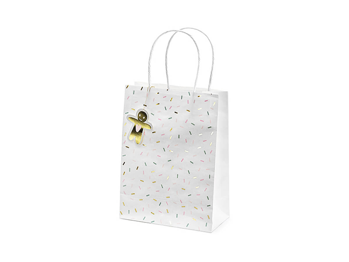 Komplet zawiera torebki o trzech różnych rozmiarach: mała (14 x 18 x 8 cm), średnia (20 x 27 x 10 cm) i duża (24 x 32 x 10 cm), które pomieszczą zarówno małe drobiazgi, jak i większe upominki. Dodatkowo, każda torebka wyposażona jest w praktyczną zawieszkę, na której można wypisać życzenia lub oznaczyć, do kogo prezent jest adresowany.