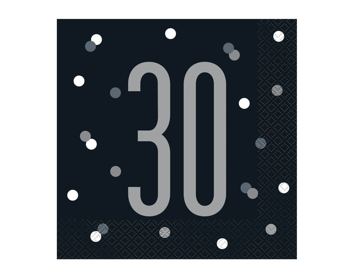 Serwetki urodzinowe czarne na trzydzieste urodziny - 33 cm - 16 szt.
