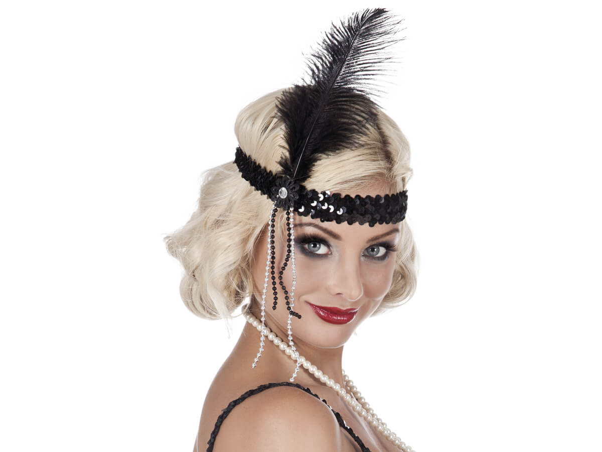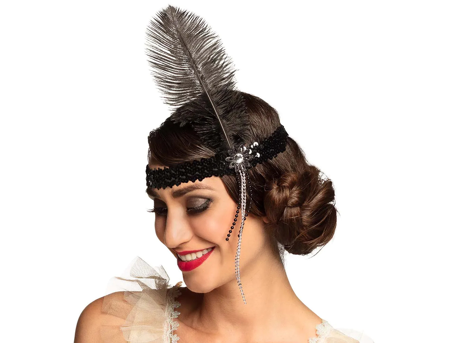Opaska z piórem i koralikami Retro czarna - 1 szt.