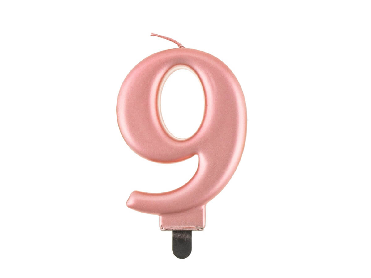 Świeczka cyferka metaliczna różowe złoto - 9 - dziewiątka