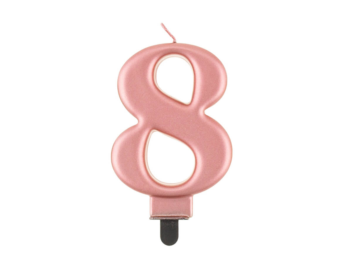 Świeczka cyferka metaliczna różowe złoto - 8 - osiem