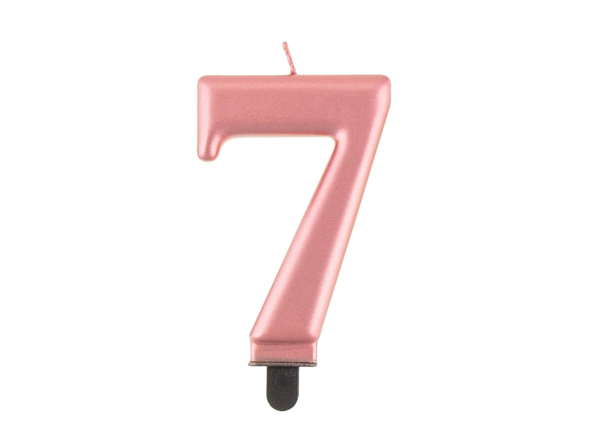 Świeczka cyferka metaliczna różowe złoto - 7 - siedem