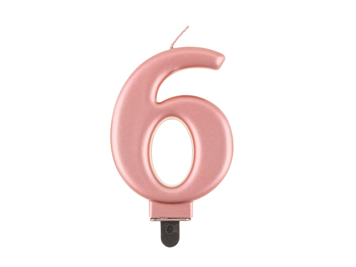 Świeczka cyferka metaliczna różowe złoto - 6 - sześć