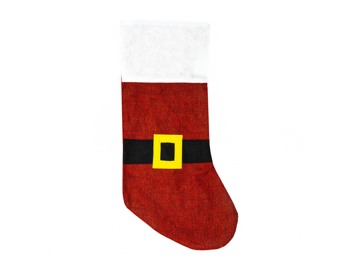 Skarpeta wykonana jest z wysokiej jakości materiałów w intensywnie czerwonym kolorze z charakterystycznym pasem przypominającym strój Mikołaja, co dodaje jej uroku i oryginalności. Rozmiar 44 cm x 16 cm zapewnia odpowiednią pojemność na wszelkie świąteczne drobiazgi.