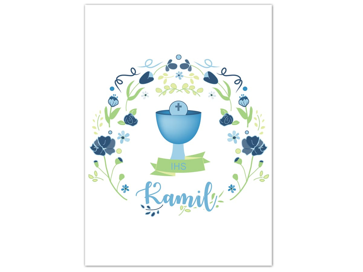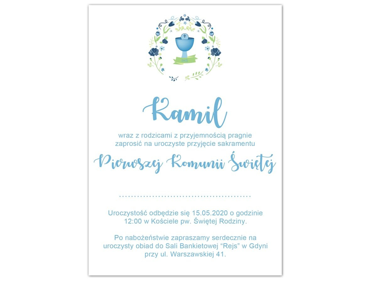 Zaproszenia personalizowane na I Komunię Świętą - Błękitny Kielich - 8 szt.